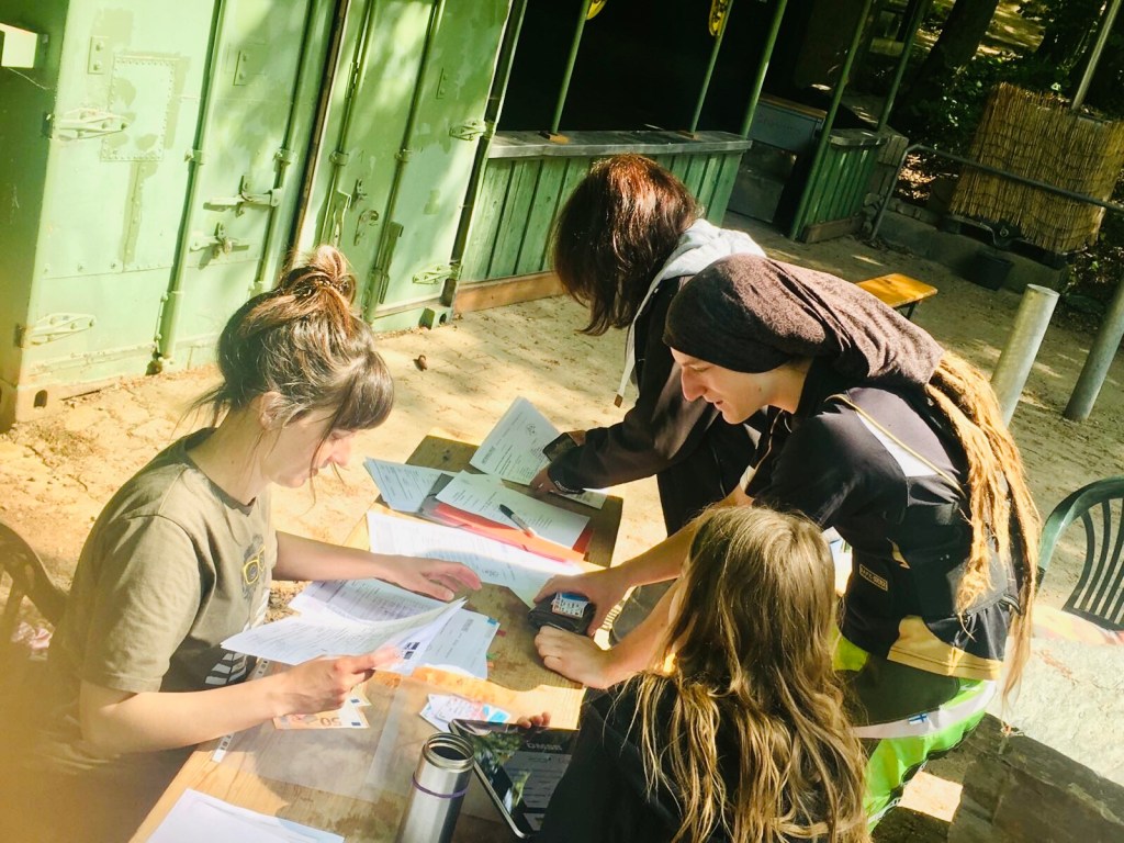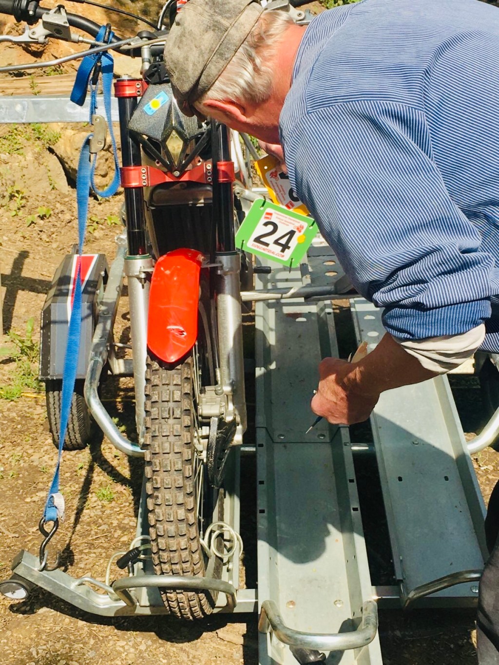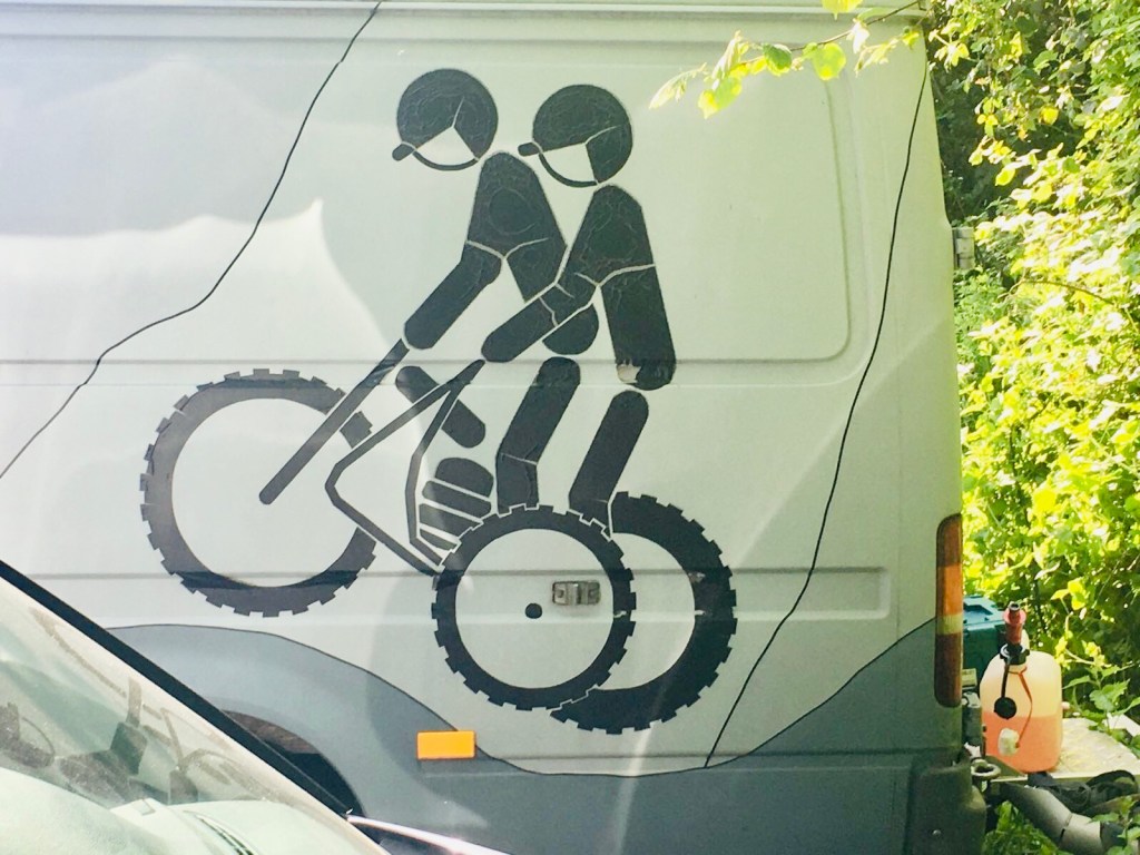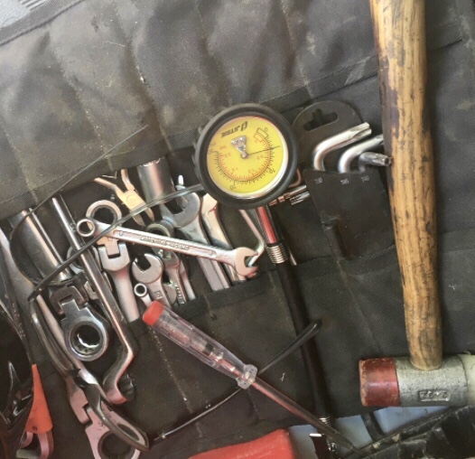 Letzte Vorbereitungen und der lästige Papierkram vor dem Start. Der Frühnebel verdeckt gnädig die zerknitterten …nunja… Reifen … 😎