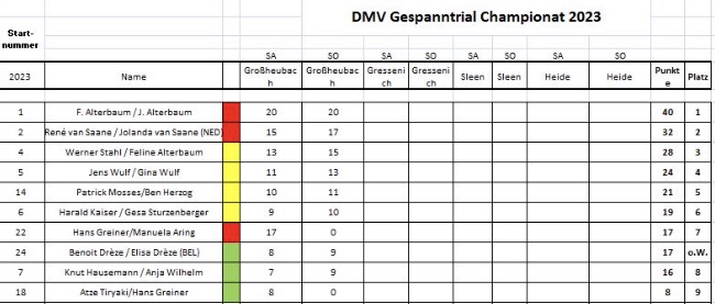 Die Wertung VOR dem jetzigen Wochenende (20. und 21. Mai 2023) sieht aus wie folgt: