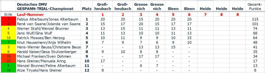 Aktuelle Wertungstabelle und DMV-Regelwerk für das DMV-Gespanntrial-Championat und das DMV-Speedtrial. Stand. Sommer 2023